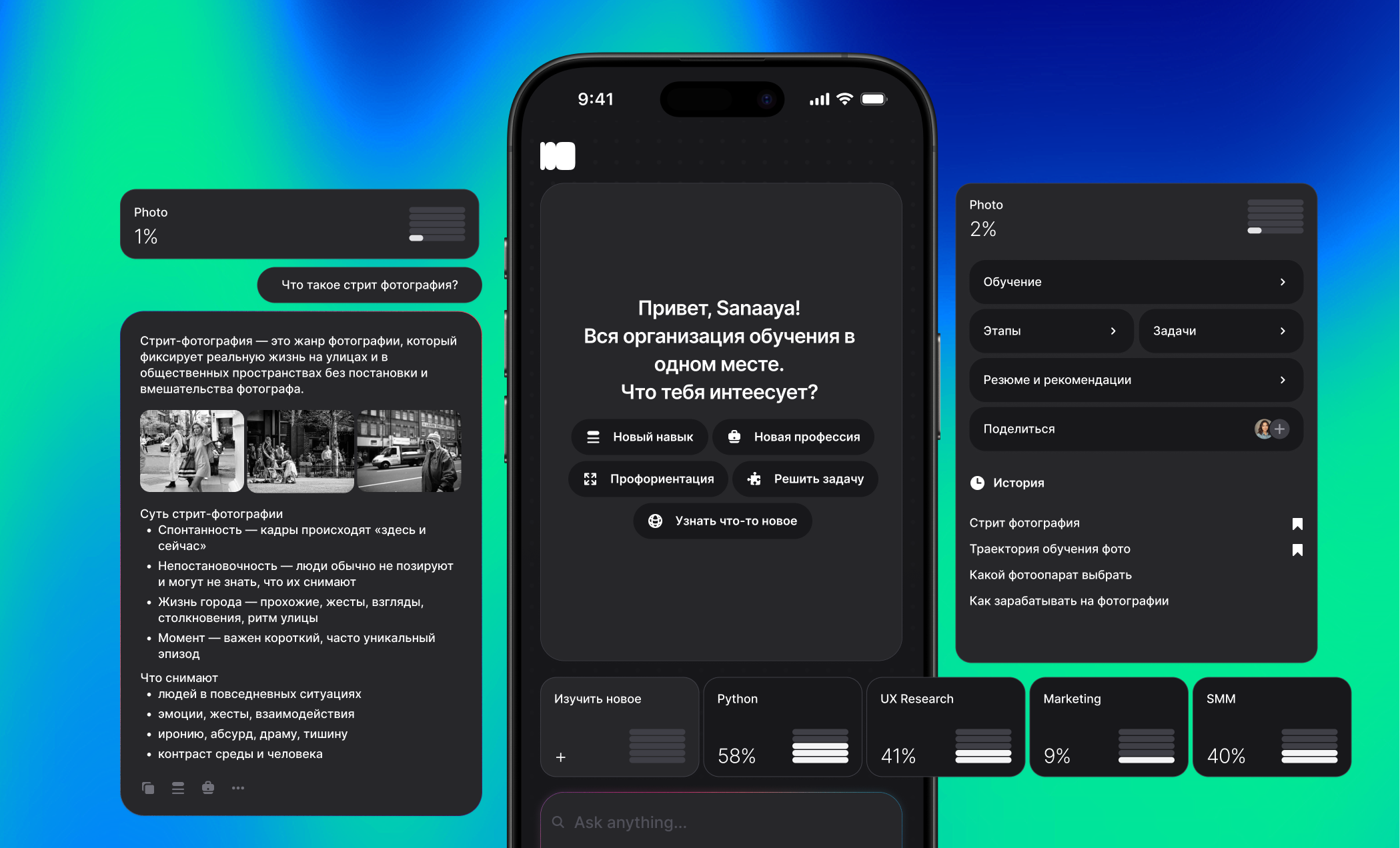 Современные AI-модели наконец позволяют собрать развитие вокруг личности, а не наоборот. Сегодня мы создаём продукт, который будет ценным каждый день для тех, кто хочет учится.